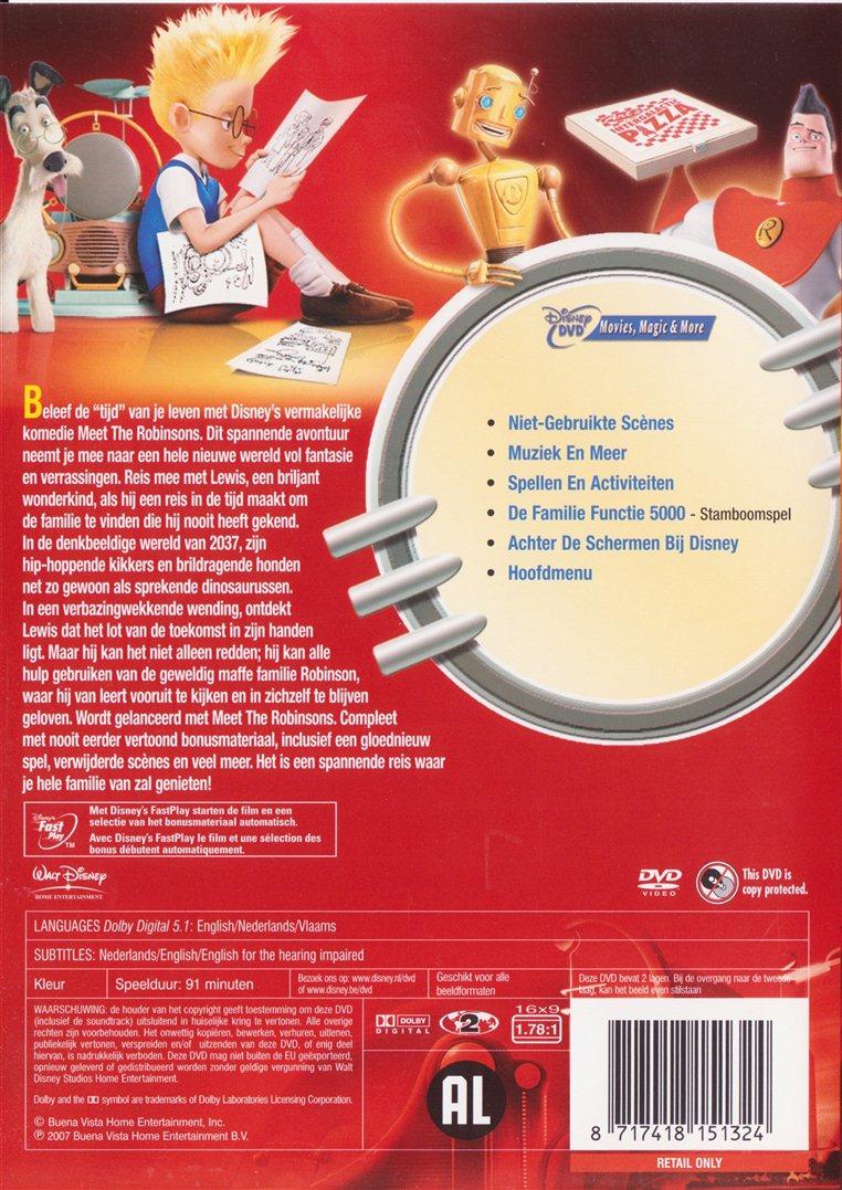 Plot:Beleef de "tijd" van je leven met Disney's vermakelijke komedie Meet The Robinsons. Dit spannende avontuur neemt je mee nar een hele nieuwe wereld vol fanatasie en verassingen. Reis mee met Lewis, een briljant wonderkind, als hij een reis in de tijd maakt om de familie te vinden die hij nooit heeft gekend. In de denkbeeldige wereld van 2037, zijn hip-hoppende kikkers en brildragende honden net zo gewoon als sprekende dinosaurussen.