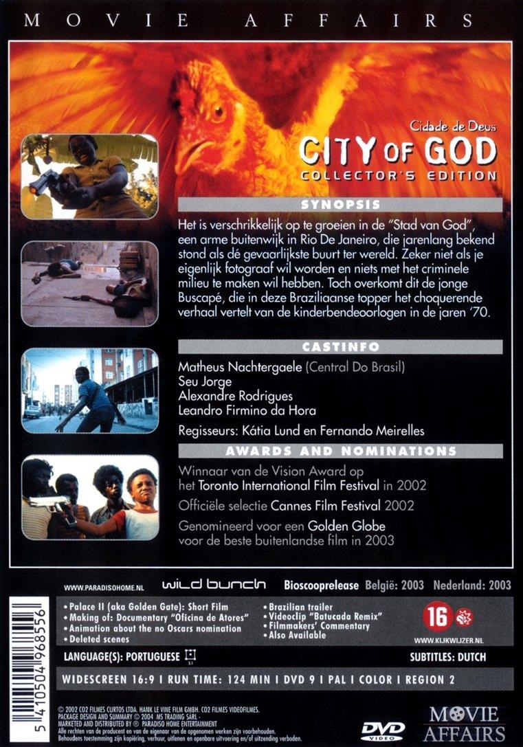 | Plot: | Het is voor hen verschrikkelijk op te groeien in de Stad der goden, een arme buitenwijk van Rio de Janeiro die jarenlang bekend stond als de gevaarlijkste buurt ter wereld. Zeker niet als je niets met het criminele mileu te maken wil hebben. Toch overkomt dit de jonge Buscape, die in deze Braziliaanse topper het choquerende verhaal vertelt van de kinderbendeoorlogen in de jaren '70. |