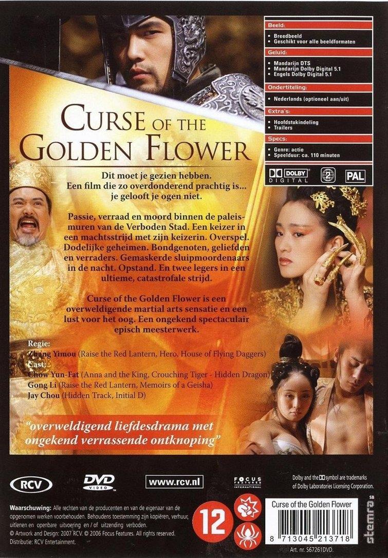 | Plot: | Passie, verraad en moord binnen de paleismuren van de Verboden Stad. Een keizer in een machstrijd met zijn keizerin. Overspel. Dodelijke geheimen. Bondgenoten, geliefden en verraders. Gemaskerde sluipmoordenaars in de nacht. Opstand. En twee legers in een ultieme, catastrofale strijd. Curse of the Golden Flower is een overweldigende martial arts sensatie en een lust voor het oog. Een ongekend spectaculair episch meesterwerk. |