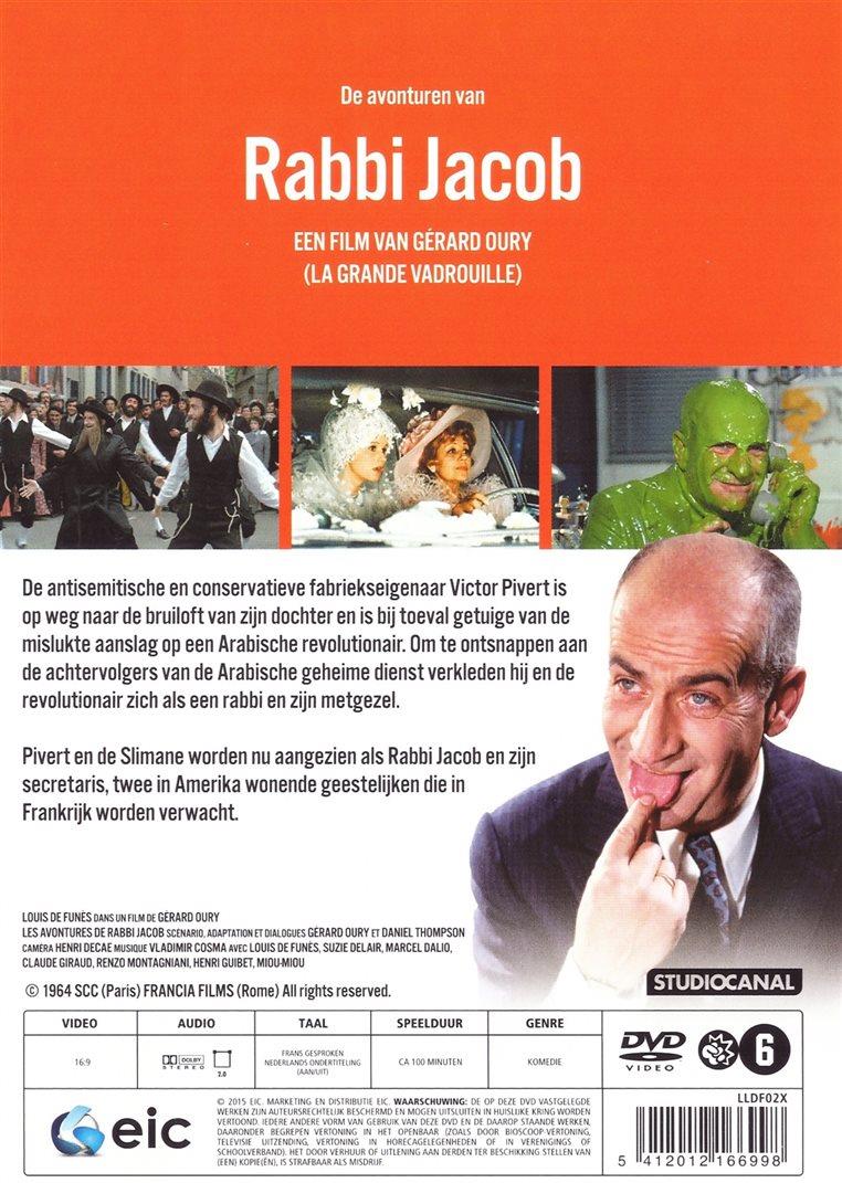 | Plot: | De antisemitische en conservatieve fabriekseigenaar Victor Pivert is op weg naar de bruiloft van zijn dochter en is bij toeval getuige van de mislukte aanslag op een Arabische revolutionair. Om te ontsnappen aan de achtervolgers van de Arabische geheime dienst verkleden hij en de revolutionair zich als een rabbi en zijn metgezel. Pivert en de Slimane worden nu aangezien als Rabbi Jacob en zijn secretaris, twee in Amerika wonende geestelijken die in Frankrijk worden verwacht. |