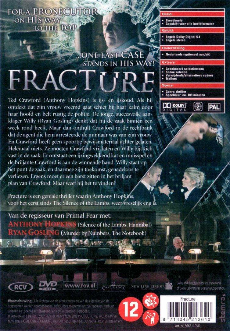 | Plot: | Op het moment dat Ted Crawford (Anthony Hopkins) ontdekt dat zijn jonge vrouw Jennifer (Embeth Davidz) vreemd gaat, plant hij haar moord.. de perfecte moord. Onder de agenten die op de plaats delict arriveren is gijzelingsonderhandelaar Rob Nunally (Billy Burke), de enige agent die van Ted het huis in mag. Crawford bekend tot Rob's verrassing direct dat hij zijn vrouw vermoord heeft, maar zorgt er ook voor dat Rob het lijk niet goed te zien krijgt. Na zijn arrestatie krijgt assistent aanklager Willy Beachum (Ryan Gosling) de eenvoudige taak de veroordeling te regelen. Een fluitje van een cent voor Willy, een jonge hot shot die met een been bij zijn nieuwe werkgever, een prestigieus advocatenkantoor, binnenstaat. Maar niets is zo simpel als het lijkt, blijkt ook in deze zaak. Zal de charme van de macht en zijn affaire met de sexy en ambitieuze advocate Nikki Gardner (Rosamund Pike) Beachum afleiden in zijn heftige gevecht om te winnen - of nog erger, hem dwingen zijn beroepscode te overtreden? In een hevig gevecht tussen intellect en strategie moeten Crawford en Beachum onder ogen zien dat in iedere, ogenschijnlijk vlekkeloze facade een barstje kan worden gevonden. |