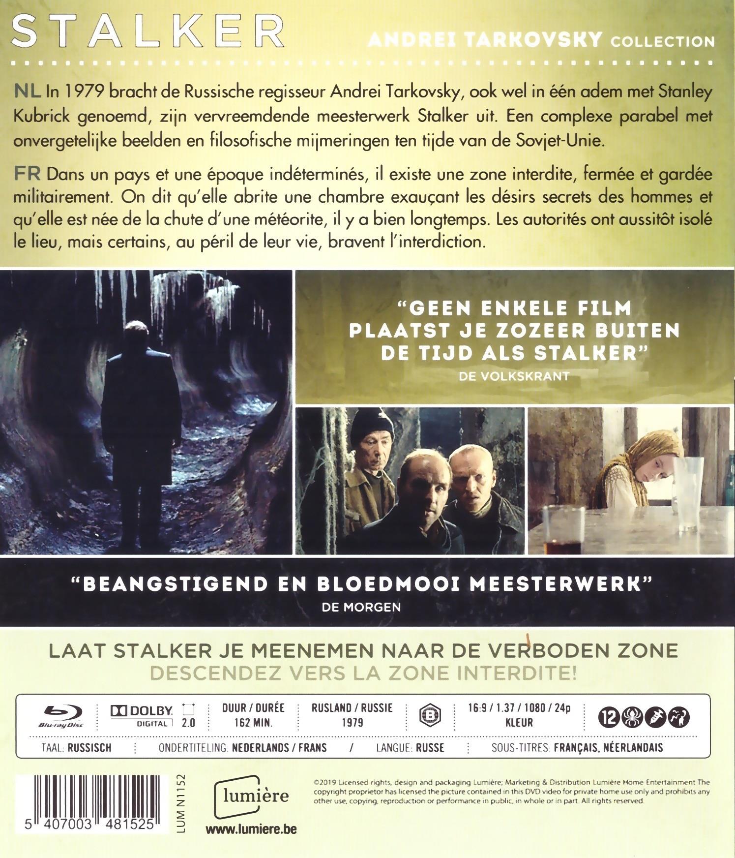 | Plot: | In 1979 bracht de Russische regisseur Andrei Tarkovsky, ook wel in één adem met Stanley Kubrick genoemd, zijn vervreemdende meesterwerk Stalker uit. Een complexe parabel met onvergetelijke beelden en filosofische mijmeringen ten tijde van de Sovjet-Unie. |